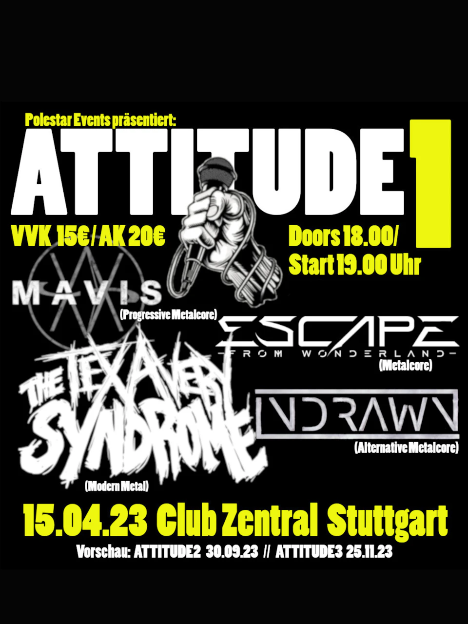 ATTITUDE ist eine neue Konzertreihe in Stuttgart, bei der aufstrebende Bands aus Liebe zur Livemusik auftreten - nicht wegen Gagen. Sie beweisen, dass sie die richtige Einstellung (=Attitüde, engl. Attitude) und das Herz von echten Musikern haben. Belohnt das, und sorgt dafür, dass Livemusik nicht stirbt!