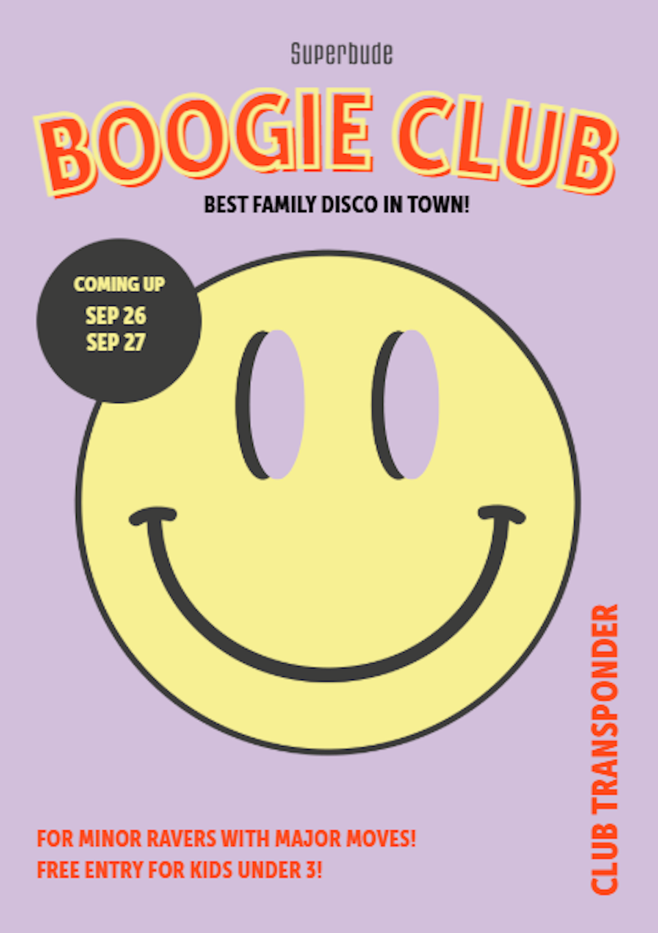 BOOGIE CLUB am 26. September 2026 @ Club Transponder - Disko für Familien - Minor Ravers, Major Moves!