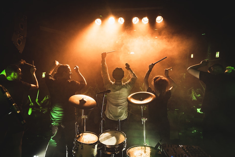 Hunderte Trommeln und Tausende Stöcke liegen im drum klub bereit und warten darauf, von den Besuchern benutzt zu werden. N.U. Unruh (Einstürzende Neubauten) und Lars Neugebauer sind die Initiatoren des Spektakels. Unter Ihrer Führung und Anleitung werden die Trommeln geschlagen und die Mauern des Waschhauses ins Wanken gebracht. N.U. Unruh und Lars Neugebauer arbeiten mit speziellen Drum-Installationen, an denen sich die Teilnehmer ausprobieren und austoben können. Dazu gibt es elektrische Beats und Sounds, die sich mit den durch Muskelkraft erzeugten Klängen verbinden. Die dabei produzierten Adrenalinschübe sind gewaltig – es wird gelacht, getrommelt und getanzt vor Glück. Beim drum klub verschmelzen Künstler, Teilnehmer und Zuschauer zu einem Schlagwerk. Ein beeindruckendes und beglückendes akustisches und körperliches Gemeinschaftserlebnis. Keep Drumming!