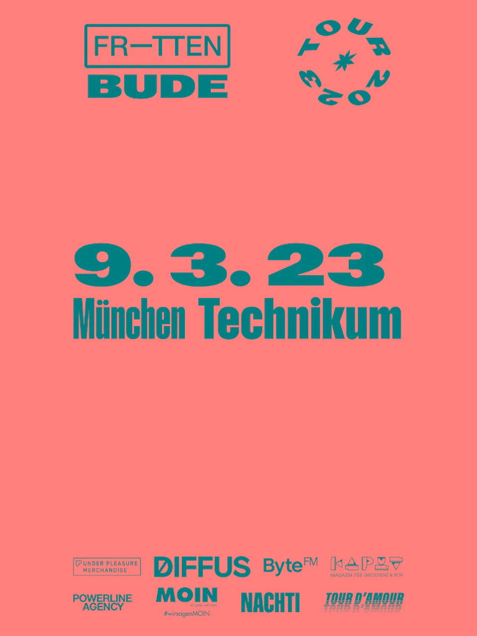 Frittenbude kommen wie immer wieder zurück zu dir und gehen auch in 2023 erstmal ordentlich auf Tour. Wie schon auf der jüngst erschienenen kleinen bis großen Technopunk Hymne ‘Sandradome’ wird alles plattgewalzt, was sich entgegenstellt. Das ganze Frühjahr steht im Sternzeichen der Eskalation. Haben wir nicht alle langsam wieder Bock auf Ekstase und schnellen und heissen Scheiss? Zwischen Blitzlicht und Nebel, zwischen Bass und Boykott da finden wir uns wieder in ewiger Glückseligkeit. Zwölf Städte, zwölf diskokugelartige Abrissbirnen die Frittenbude höchstselbst mit dem Basslaster von Nacht zu Nacht manövrieren. Ist da etwa ein Album in Sicht? Hajo <3