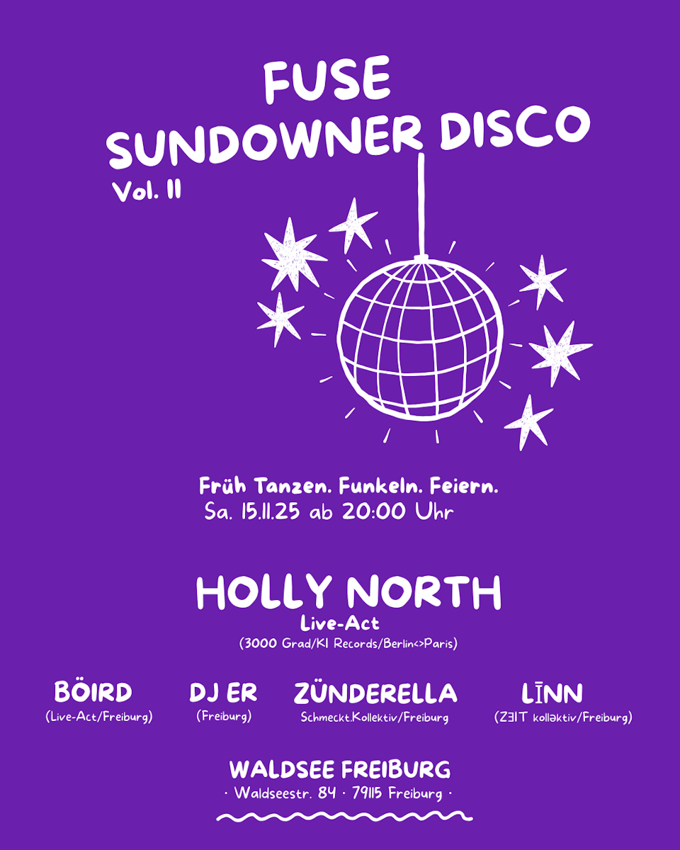 Für alle, die nicht erst mitten in der Nacht losziehen wollen, um die Dancefloors der Stadt zu erobern, starten wir zum zweiten mal Freiburgs elektronische Early Disco-Sause - die FUSE SUNDOWNER DISCO - Vol. II 🌞🌛