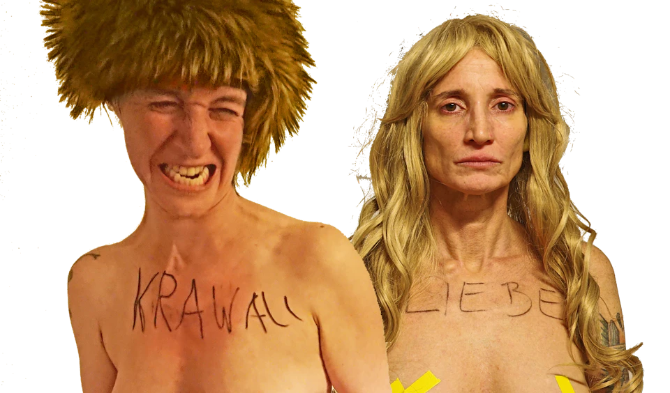 Krawall und Liebe und der ganze Rest – darüber singt das Duo Irma Schwank. Die musikalischen Performances von Nina Glycerin und Ina B-Punkt führen die Zuschauer auf Schauplätze menschlicher Kuriositäten. Die Würgerin von Aachen tanzt mit dem immer-frohen Klaus zum Rosenbeat. Von der Fleischeslust überwältigt, fängt mit dem Badewannen-Suizid das Leben erst so richtig an. Blumen und Federboas fliegen, Schlagstöcke und Weihrauchschwenker schwingen gegen den Takt.