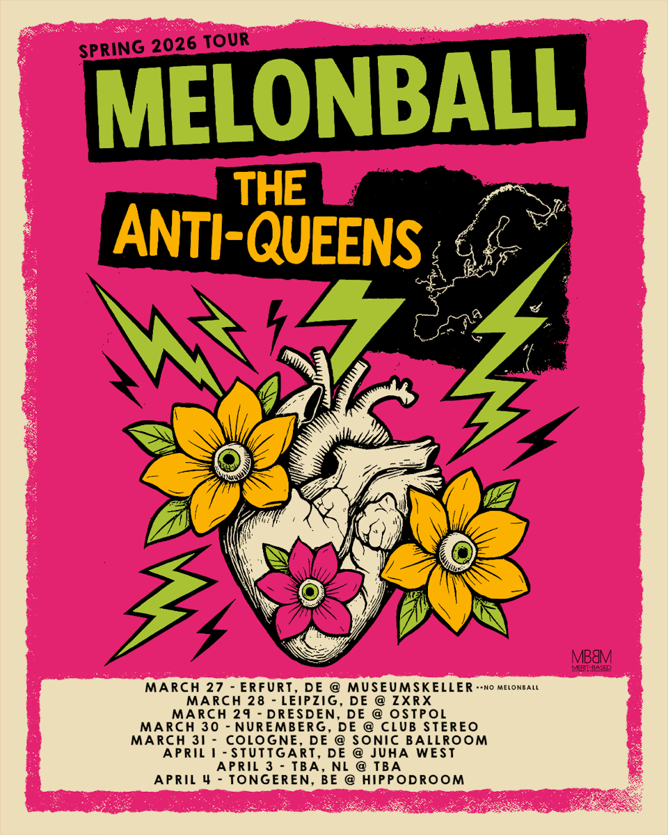 Bereit für eine geballte Ladung Punkrock? MELONBALL aus Nürnberg bringen ihren energiegeladenen Melodic-Punk auf die Bühne – schnell, direkt und mitreißend wie ein Schlag ins Herz. Direkt aus Toronto kommen THE ANTI-QUEENS dazu – eine Band, die einst rein weiblich war, heute aber durch ihre vielseitige Besetzung (inklusive männlicher Bandmitglieder) eine noch größere musikalische Tiefe zeigt. Ihre scharfen Texte, kraftvollen Hooks und kompromisslose Live-Energie sind legendär.
