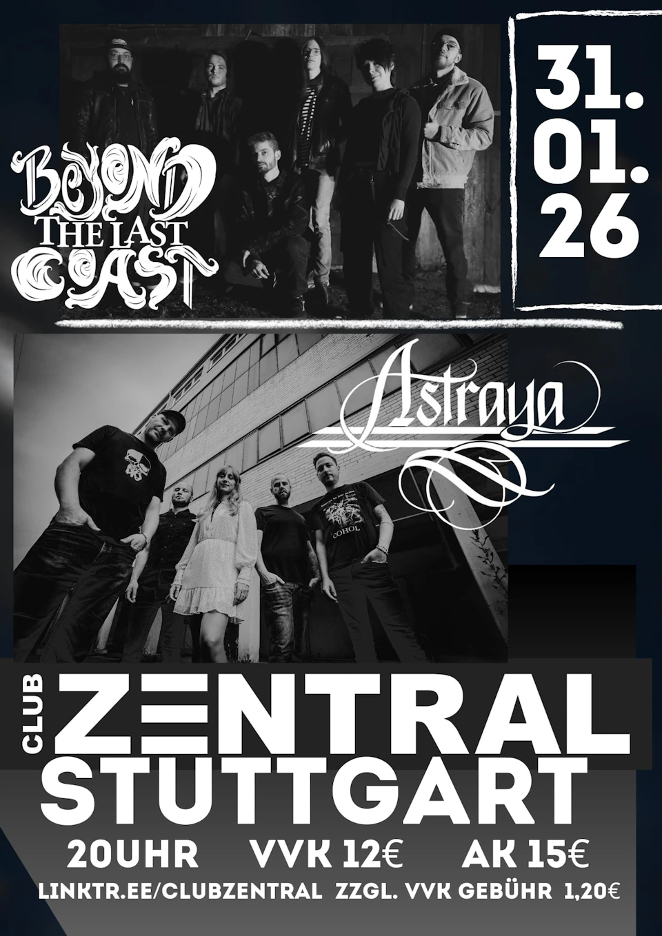 ASTRAYA ist eine fünfköpfige Rockband aus Stuttgart, die mit ihrem einzigartigen Sound zwischen sphärischem Postrock, wuchtigem Metal und düsterer Melancholie seit 2018 für Aufsehen sorgt. Auf der Bühne entfaltet die Band ihre volle Kraft: emotionale Tiefe, dynamischer Aufbau und eine eindringliche Live-Präsenz machen jedes Konzert zu einem intensiven Erlebnis. Mit epischem Gesang, außergewöhnlichen Gitarrenriffs und atmosphärischer Dichte schaffen ASTRAYA ein Klangbild, das unter die Haut geht – und im Gedächtnis bleibt. Ihre Songs erzählen von Weltschmerz, Sehnsucht und dem Gefühl, in einer entgleisenden Welt nach Halt zu suchen – Themen, die das Publikum berühren und mitreißen. 2022 erschien ihr Debütalbum Myth Of Dike – gefeiert von Kritikern und gefeatured in namhaften Magazinen der Rock- und Metal-Szene. Momentan arbeitet die Band intensiv am nächsten Kapitel: Das neue Album erscheint Ende 2025 beim Label These Hands Melt – und verspricht, noch größer, intensiver und emotionaler zu werden.