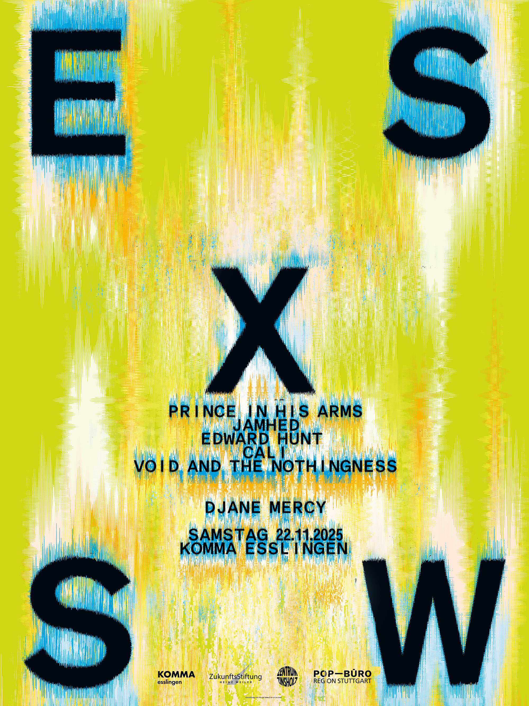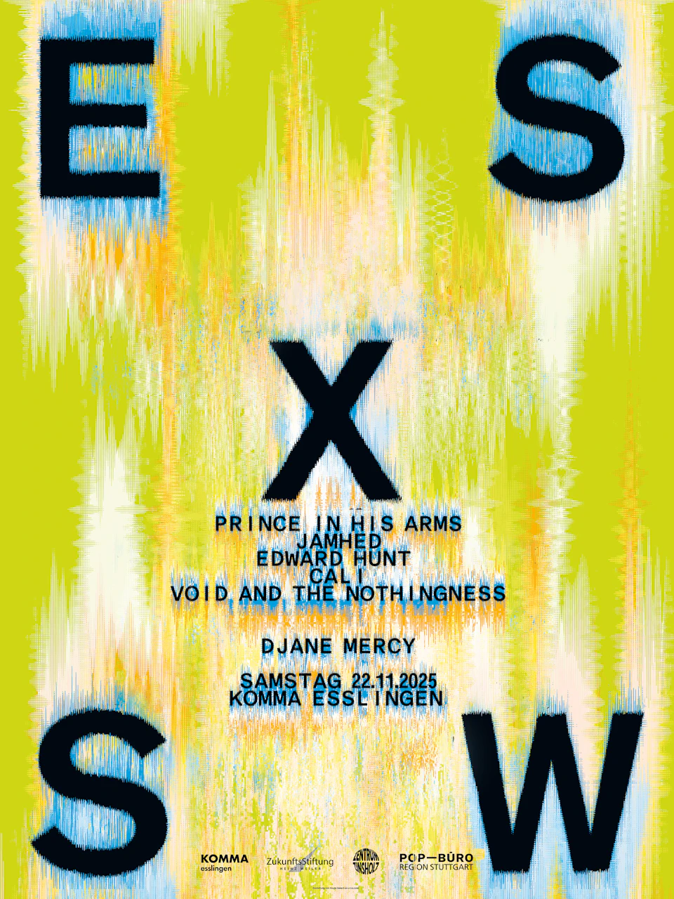 Der Abschluss des ESxSW findet am 22.11. im KOMMA esslingen statt. Wir freuen uns sehr auf Prince in His Arms, Jamhed, Edward Hunt, Cali & Void and The Nothingness. Nach den Konzerten wird DJane Mercy auflegen.