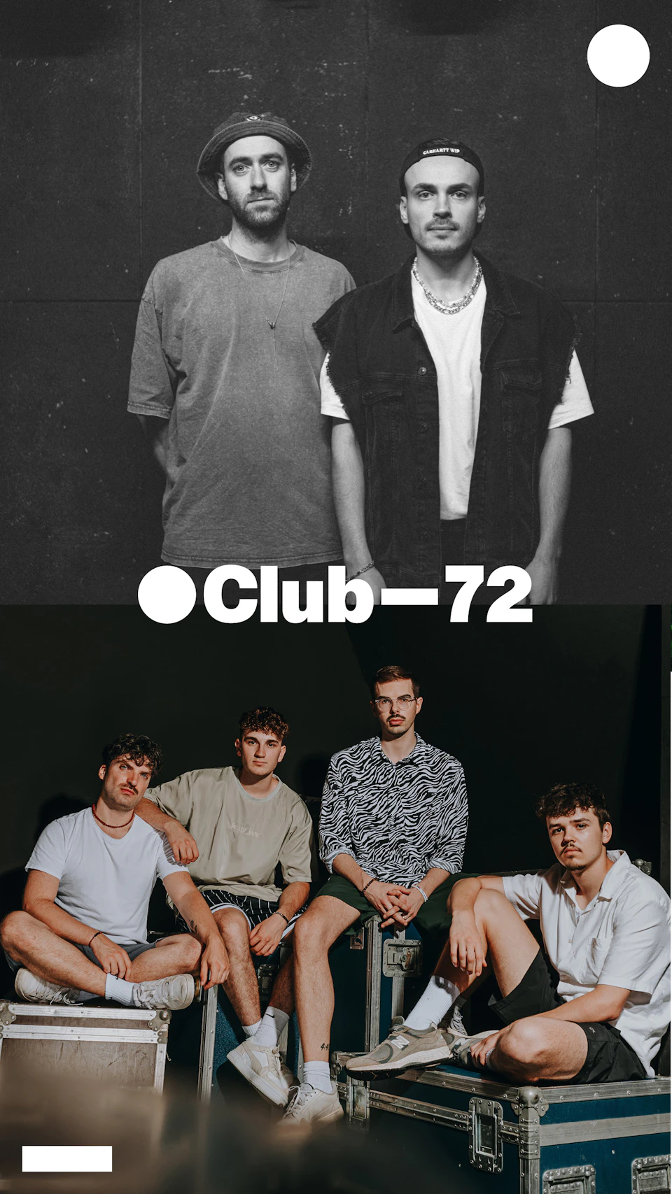 Die Stuttgarter Newcomer Zweifel bringen einen Indiepop-Genremix auf die Bühne, der gleichermaßen sicherer Raum wie emotionales Epizentrum sein darf. Velvet ist ein deutsches Indie-/Synth-Rap Duo. Musikalisch werden die ehrlichen Themen der Texte mit einem energetischen Sound untermalt. Die dynamische Liveshow basiert auf elektronischen Beats und kann je nach Veranstaltung instrumental durch Livedrums ergänzt oder als Soloperformance gespielt werden. Der Club 72 ist ein