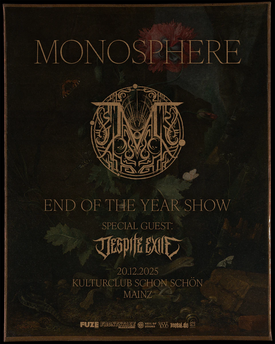 Mit ihrem experimentellen Sound zwischen modernem Prog, atmosphärischem Post-Metal und explosivem Metalcore haben sich Monosphere innerhalb der letzten 3 Jahre zu einer der spannendsten Metalbands Deutschlands entwickelt. Nach internationalen Touren mit The Hirsch Effekt, DVNE, Wheel und Supportslots für Cradle Of Filth, Napalm Death, Wage War und Karnivool und dem Release zweier Alben ("The Puppeteer" 2021 & "Sentience" 2023) in Eigenregie exponiert sich die Band aus Mainz als umtriebigste Band der Stadt. Nach Shows im Vorprogramm von Hypno5e, The Ocean und DVNE in unserem Club, kommen Monosphere für eine exklusive Mainz-Show zurück, um 10 Jahre Bandgeschichte zu feiern und 2025 gebührend abzuschließen. Nach dem Release ihrer aktuellen Doppel-Single „Lapse“ hat die Band angekündigt 2025 ein neues Album zu veröffentlichen, das mit Spannung erwartet werden darf.