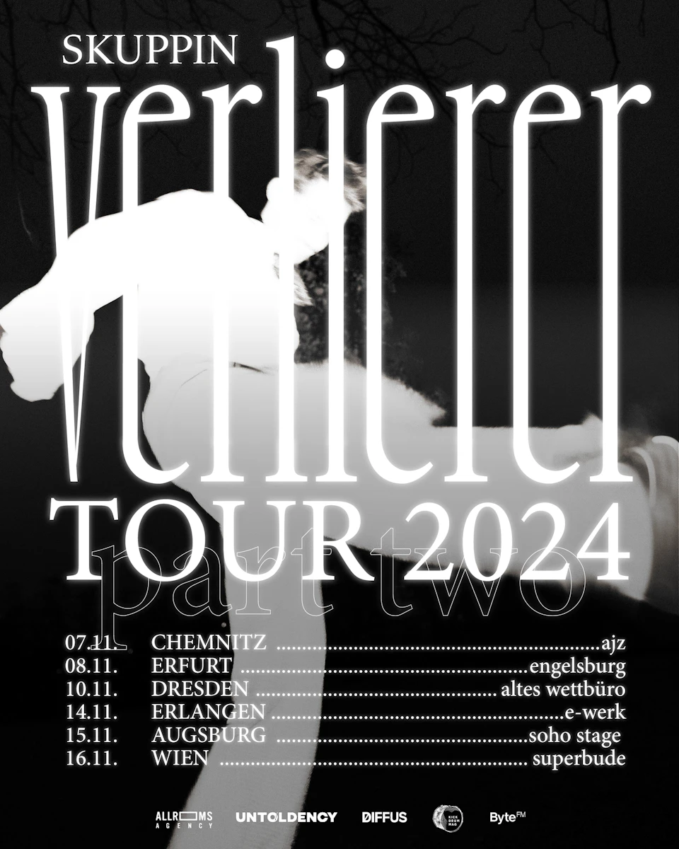 SKUPPIN hat im Februar 2024 sein Debütalbum RELIQUIEN veröffentlicht. Kurz darauf folgte die erste Headline-Tour mit Band, die nun im November 2024 noch einmal verlängert wird. SKUPPIN aus Chemnitz/ Leipzig mal seine vom 80s Synth-Pop inspirierten Sounds auf zeitgemäße Weise aus und besticht dabei mit tragenden Synth-Klängen und seiner dunklen Stimmfarbe. Auf seinem Debütalbum RELIQUIEN (Vö 02.02.24) spricht er Themen zwischen Angst, Hoffnung und fehlender Zugehörigkeit an. Treibende Beats und eine unerwartete Härte prägen die Performance auf der Bühne und sein Sound erinnert an Bands wie Depeche Mode, Edwin Rosen oder Kraftwerk.