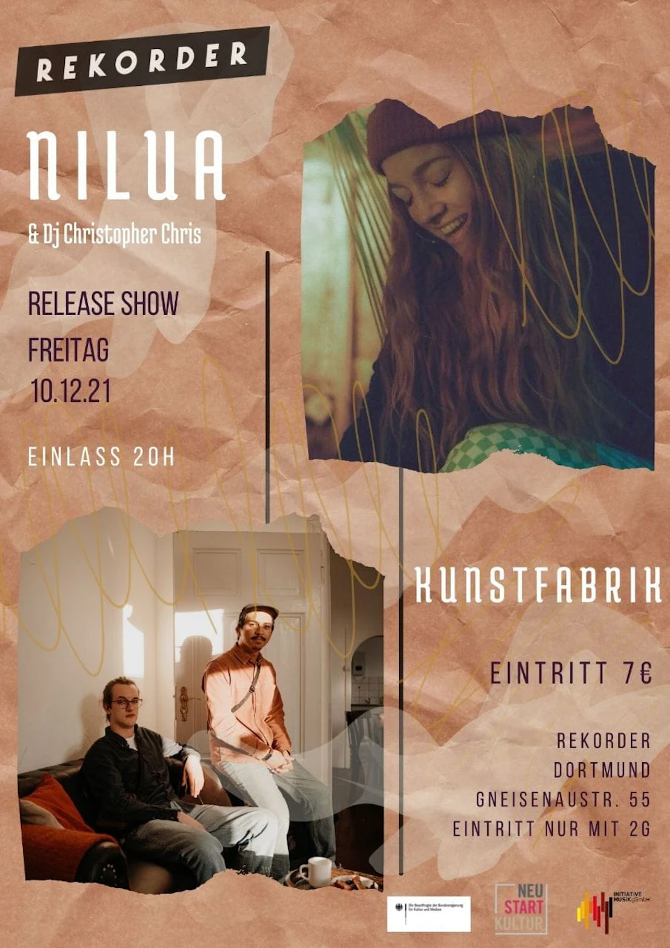 Nilua – die stimmgewaltige Newcomerin aus dem Ruhrgebiet. Mit deepen Beats und ausgereiften Vocals überzeugt Nilua seit jeher die Singer-Songwriter-Fangemeinde. Nilua fühlt. In der Komposition aus Beat, Stimme und Backings werden Zuhörer:innen in die Welt der Emotionen mitgerissen. Und zum Kopfnicken animiert. Dabei ist Nilua nicht nur im Hip-Hop und Soul zuhause sondern begeistert auch durch Acoustic- sowie Loop-Einlagen mit Trip-Hop- und Reggaeelementen bei ihren Live-Auftritten.