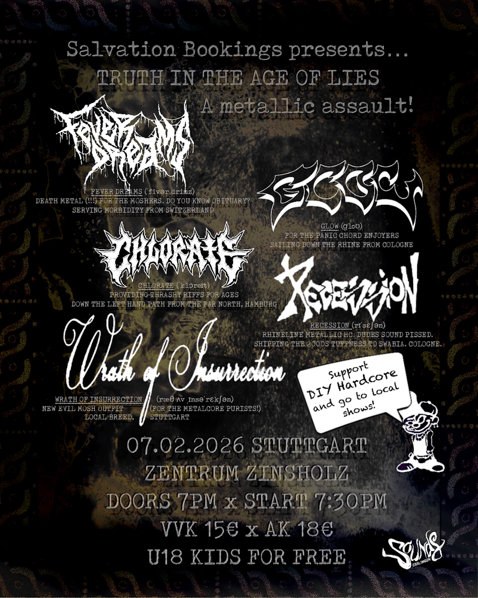Super stoked to announce this killer line up! 5 metallic powerhouses from the German and Swiss hardcore scenes flood the basin of Stuttgart on February 7, 2026!