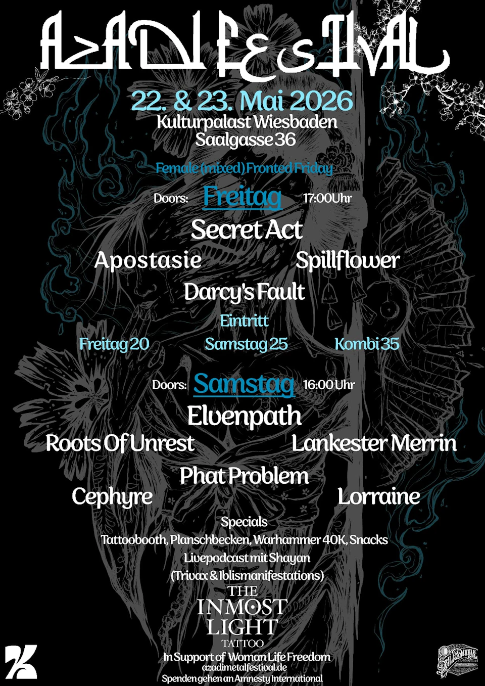 Ob Opressionen durch die Regierung im Iran, oder Gewalt durch Krieg von äußeren Einflüssen, das Azadi Metal Festival trägt den Ruf nach Freiheit von den Straßen Irans auf musikalische Bühnen.