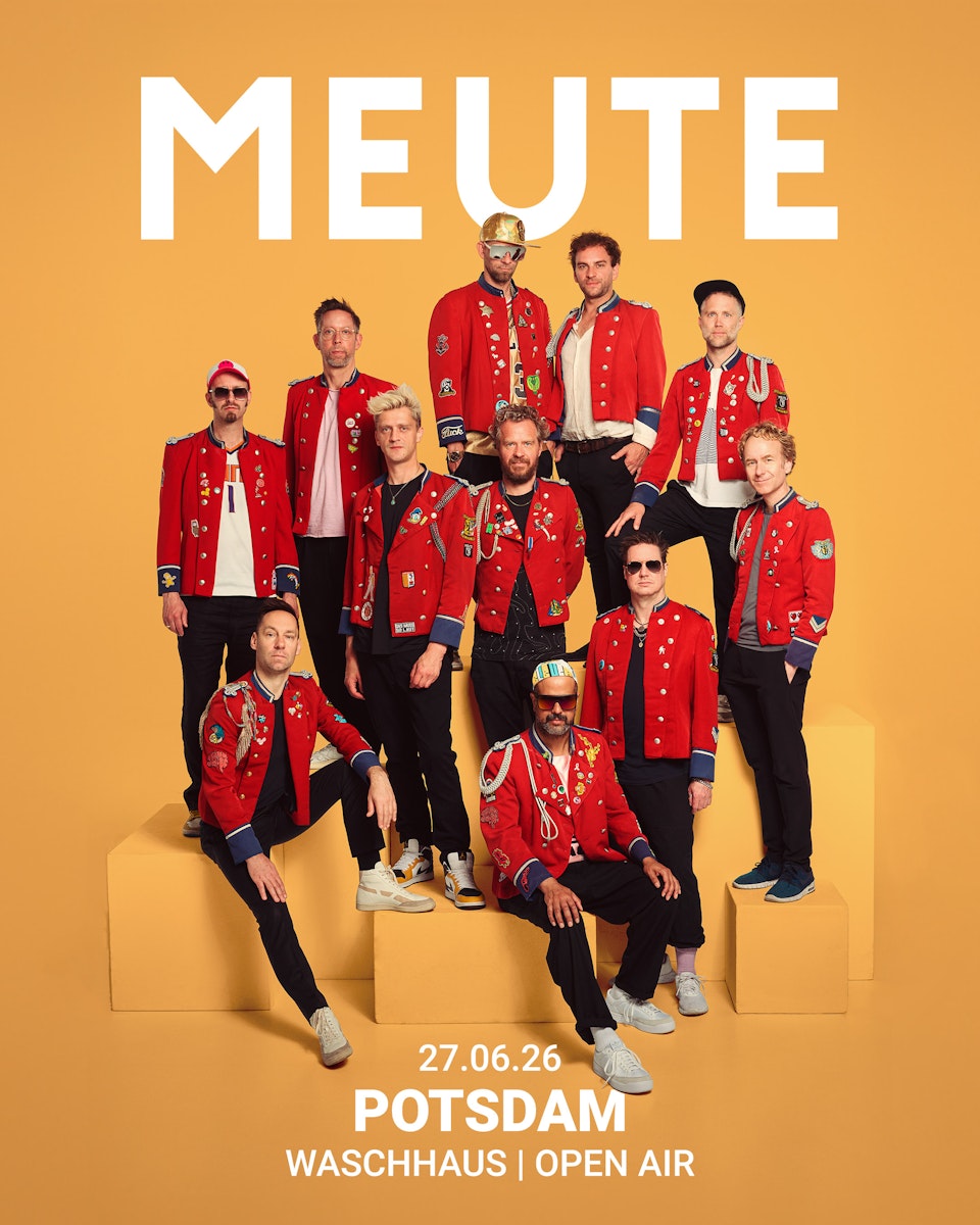 Der Bass vibriert, das Konfetti flimmert und die roten Uniformen glitzern im Strobo. Durch die explosive Kombination aus hypnotisch treibendem Techno und expressiver Blasmusik erzeugt die Techno Marching Band MEUTE seit 2015 großen Wirbel quer über den Planeten. Die elf Hamburger in den ikonischen roten Jacken brechen Regeln und sprengen Grenzen.