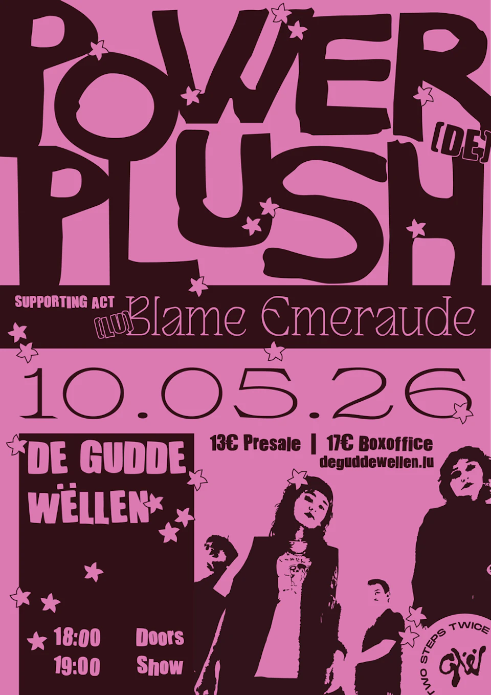 POWER PLUSH at De Gudde Wëllen - organized by TWO STEPS TWICE