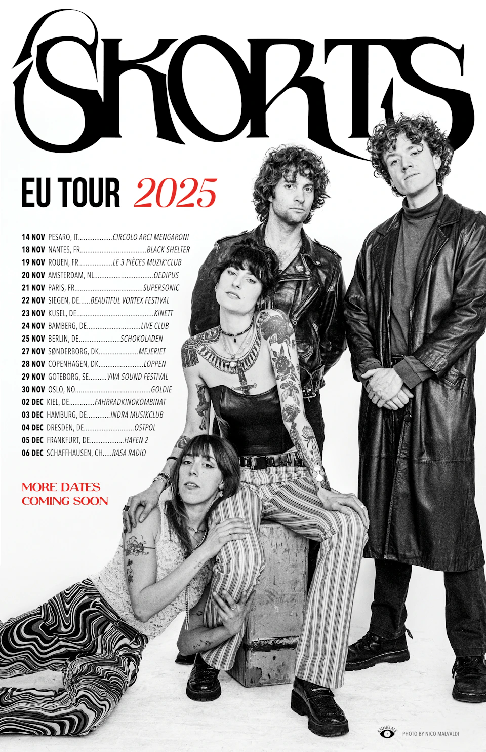 Seit dieser ersten Show hat SKORTS nicht mehr aufgehört. In den letzten Jahren war die Band überall unterwegs und ritt auf der Welle, die sie selbst ausgelöst hatte, während sie ihren Sound auf den Bühnen von New York City weiterentwickelte – und sich damit den Titel „Oh My Rockness’s Hardest Working Band” im Jahr 2024 verdiente. Im selben Jahr gewann sie den Our Wicked Lady's Winter Madness Battle-of-the-Bands-Wettbewerb und erregte die Aufmerksamkeit der Radio-Ikone Alisa Ali, die sie Anfang 2025 zu einer Live-Session für 90.7 WFUV einlud. Die Band, die durch den Schlagzeuger Max Berdik vervollständigt wird, hat sich auch auf Tournee bewährt und immer größere Säle mit treuen Fans und neuen Anhängern gefüllt, die alle darauf aus sind, ihren Anspruch geltend zu machen und sich das Recht zu verdienen, sagen zu können: „Ich kannte sie schon, als sie noch unbekannt waren.“