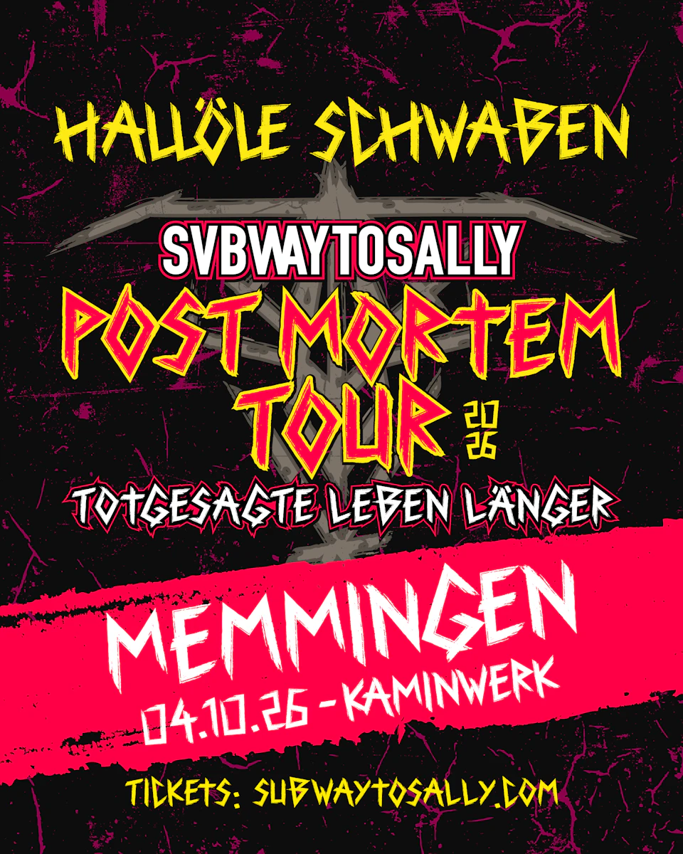 Subway To Sally kommen zurück ins Kaminwerk – und sie bringen ihr mächtiges neues Album Post Mortem mit! Freu dich auf einen Abend, der richtig unter die Haut geht: düster, kraftvoll, episch und voller Energie. Die Band zeigt, dass sie nach über 30 Jahren kein bisschen leiser wird. Im Gegenteil: Die neuen Songs treffen mit voller Wucht, und wenn dann noch die alten Favoriten dazukommen, brennt die Halle. Die Mischung aus Folk-Rock, Metal und ihrer ganz eigenen Atmosphäre macht jeden Auftritt zu einem Erlebnis, das man nicht so schnell vergisst. Das Kaminwerk wird wieder mal zum Schlachtfeld aus Emotionen, Hymnen und purer Leidenschaft. Sei dabei, wenn Subway To Sally ihre Welt aus Geschichten, Klanggewalt und Gänsehautmomenten entfesselt!