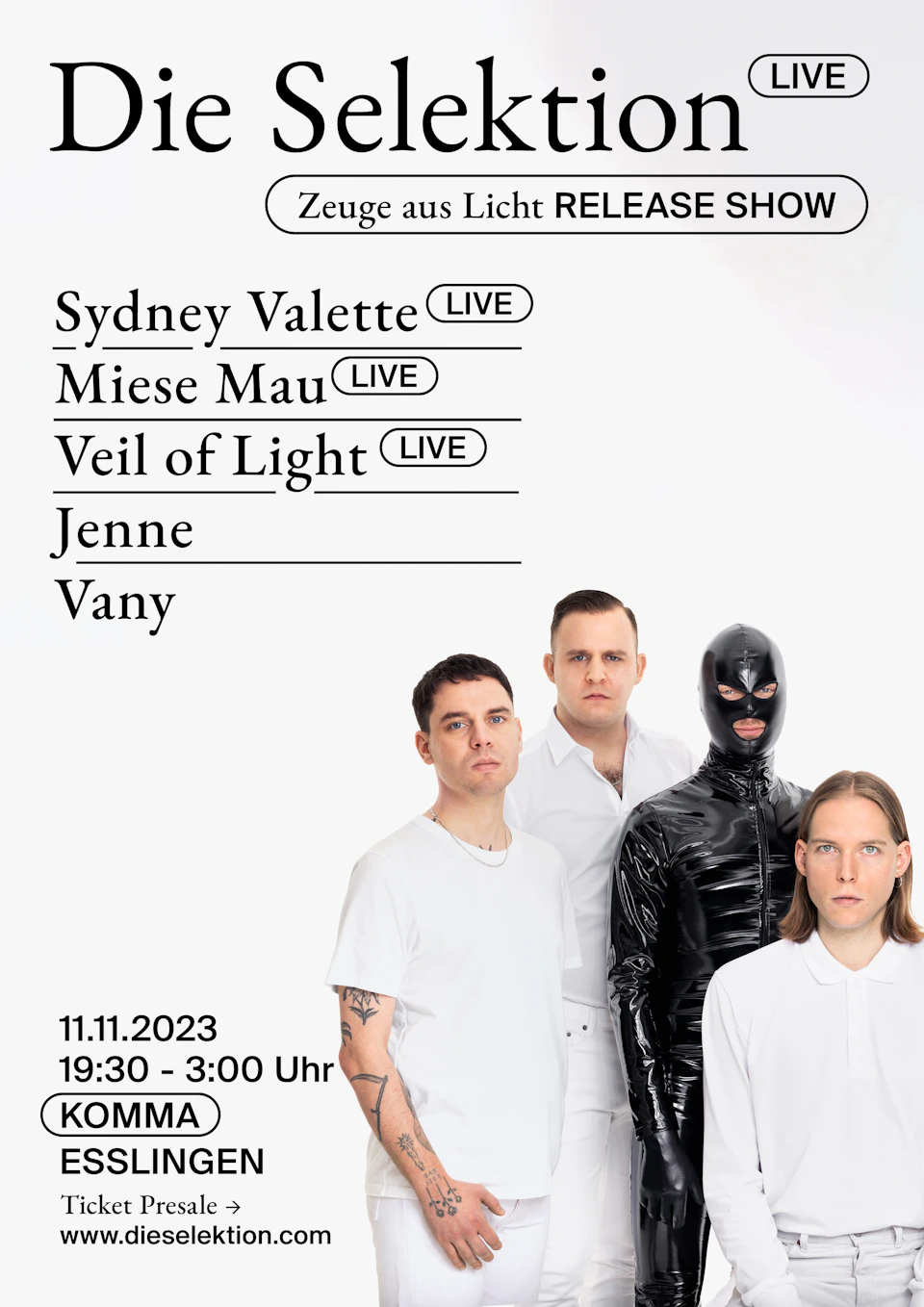 Die Selektion - Zeuge aus Licht - Release Party - Die Selektion live + Sydney Valette Live + Miese Mau live + Veil of Light live + Jenne & Vany