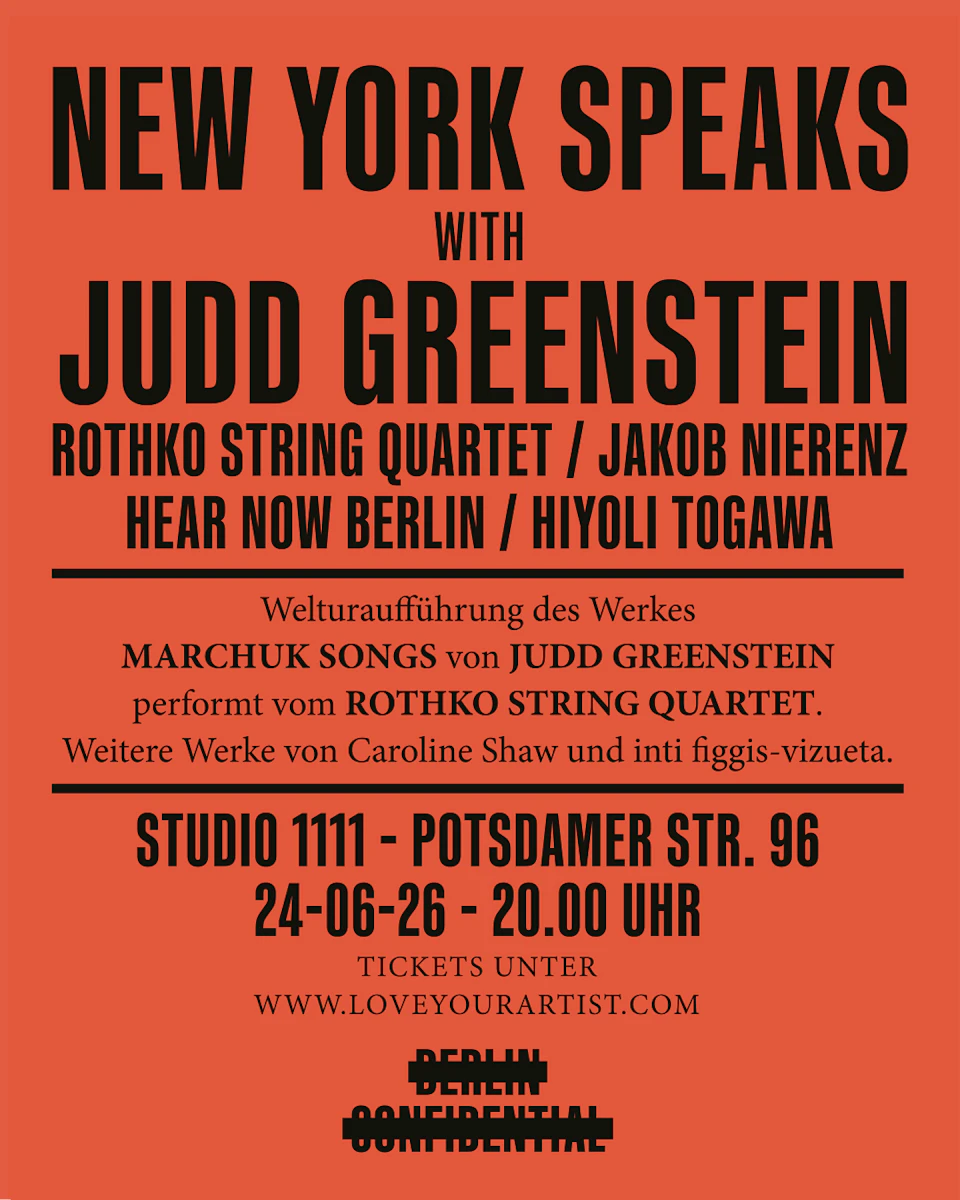 Berlin Confidential - präsentiert: New York Speaks with Judd Greenstein