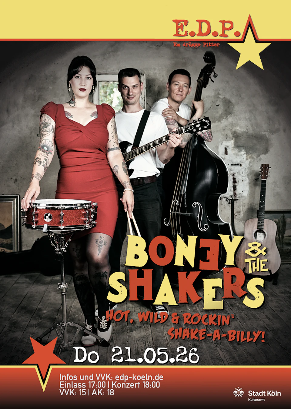 Boney & the Shakers präsentieren mit ihrer Mischung aus Akustik Rockabilly, klassischem Rock’n’Roll, oldschool R&B und ihrer eigenen frischen Interpretation des ganzen mitreißende Live Shows!