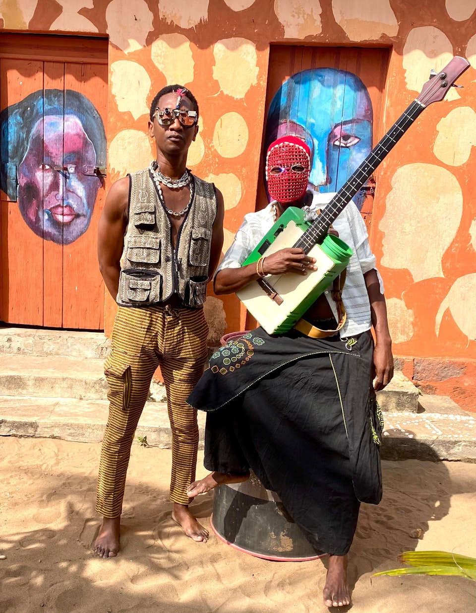 VOVOLECTR0 is a live electro-fusion project born in Lomé, blending electronic music, hand-crafted urban percussion, ritual chanting, and performative gestures. Through a hybrid compositional approach, the duo explores the links between collective memory, the body, rhythm, and contemporary technologies.